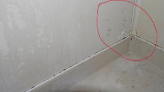 ユニットバスの壁との取り合い部分のコーキングはいくら抗菌材料でも経年劣化でカビはつきものなのですが、壁にまでこのようにカビが発生しているのは稀なケースです。