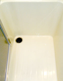 と誇らしげに言いたいのですが、このタイプの浴室を持つアパートの多くは家賃設定も低く、再生塗装のみの費用の捻出もむつかしく、ましてひび割れ等の樹脂ライニング補修の6〜8万円が一番のネックになります。