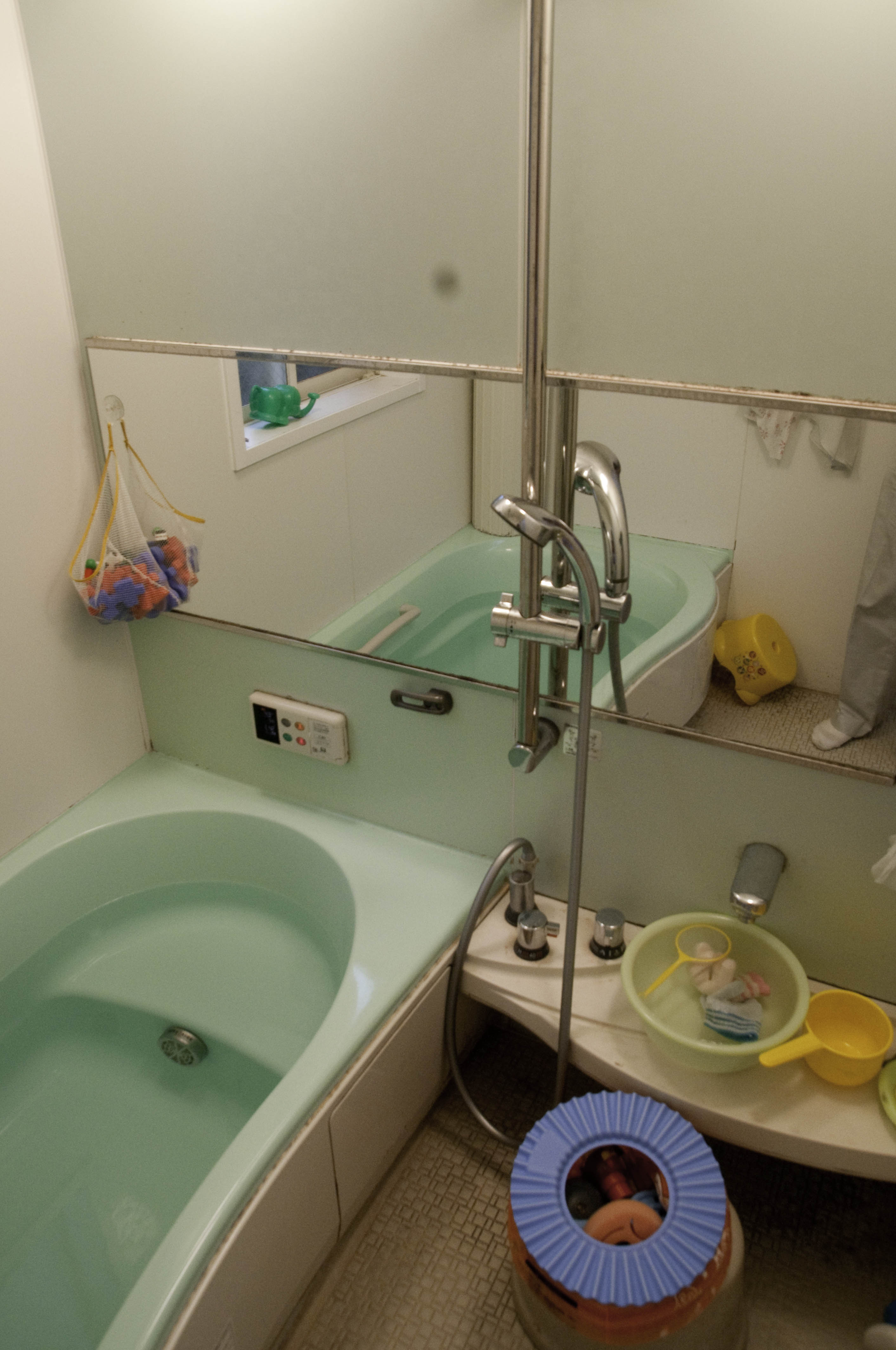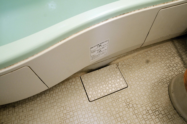 現状はこんな感じでした。INAX製の立派なユニットバス。カラリ床が水はけを良くする機能があるのに構造的欠陥なのかカビと水垢だらけです。