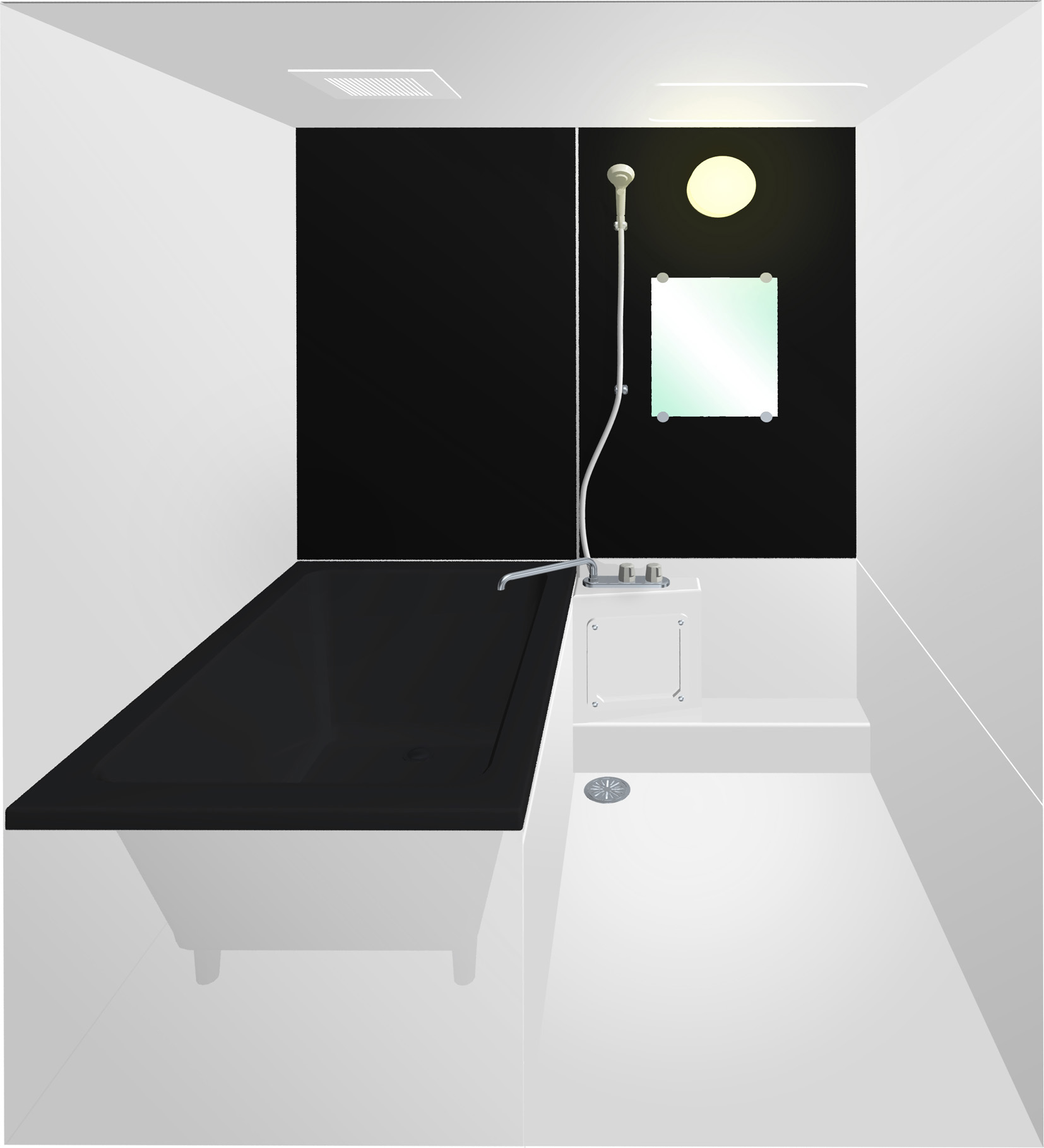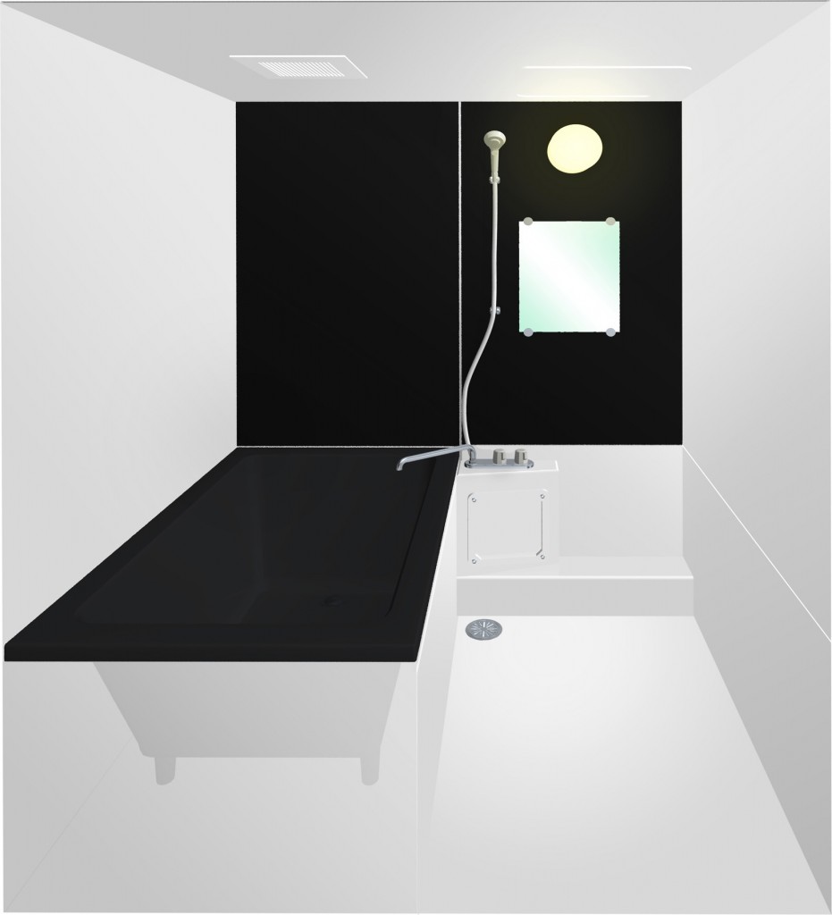 インパクトの強い黒なので壁のアクセントはやめて提案2の浴槽の中と淵だけに決定。
