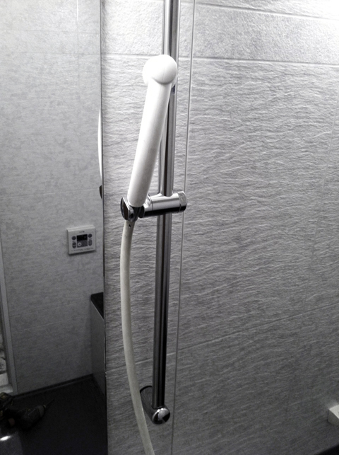 シャワーのヘッドとホースも新品に替えたいですね。ここまで浴室の雰囲気を替えたのであまりに見栄えのしないシャワーヘッドは考えものなのでメタル性に交換です。