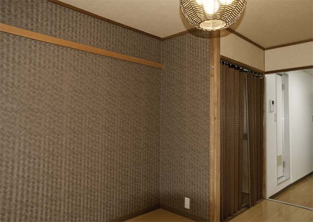 そこで問題となるのはお部屋のリフォームなんですが、このお部屋はアジアンティストでブラウン使いなのです。パネルの柄は木目調で横使い、落ち着いた色目と指定されました。