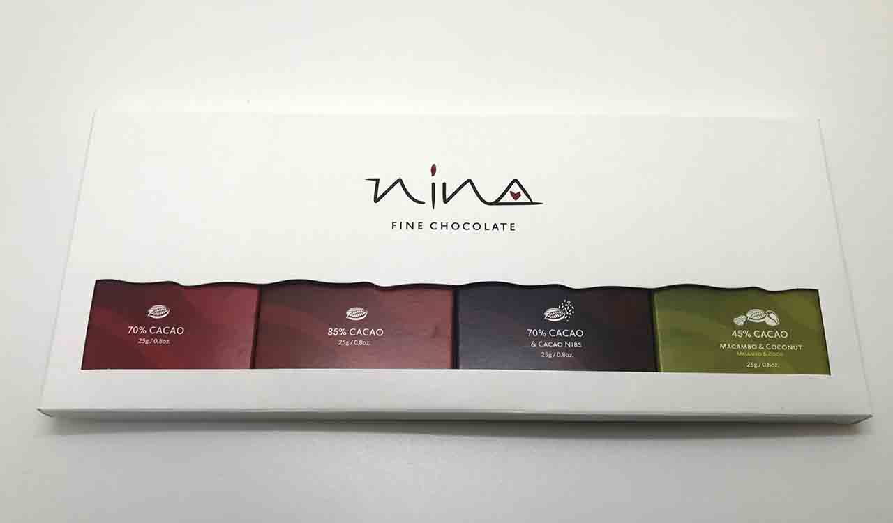 上記のチョコレートバー以外にカカオニブとカカオニブカヴォードウィズチョコレートが入荷されています。もちろん、「ニーナセレクション」として4種のミニバー(25g×4)も発売されています。最初はこれが一番お勧めです。その後にあなたの気に入ったバーを買うのが王道です。