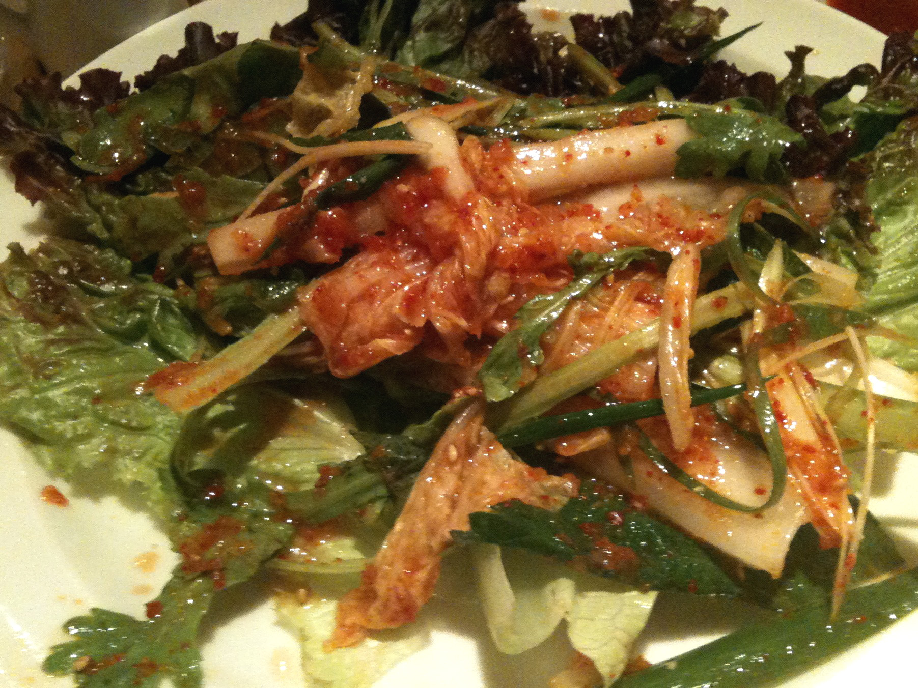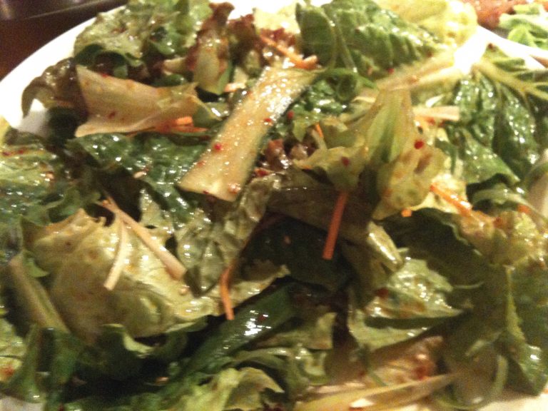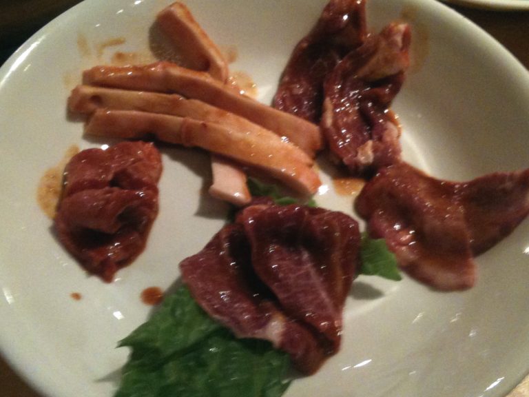 塩タンを焼いて食べていると、この日も超満員だったが店主が来て今日のおすすめは前バラの塩焼きをわさびでと、早速注文。我々年寄りにはさほど脂こく無く歯ごたえもあり美味。骨付きカルビはいつ食べても最高です。ハラミもうまい!ここのもう一つのおすすめはムンチサラダとコッチョリ。ムンチサラダは少し酸味のきいた韓国風サラダ、女性にお勧め、コッチョリは少し辛いが白菜のしんなり感が絶品、それとホルモンは種類も豊富で最高。今日はミズノミやタンツラ他。単品で注文したテッチャンは脂が乗ってめちゃうま!