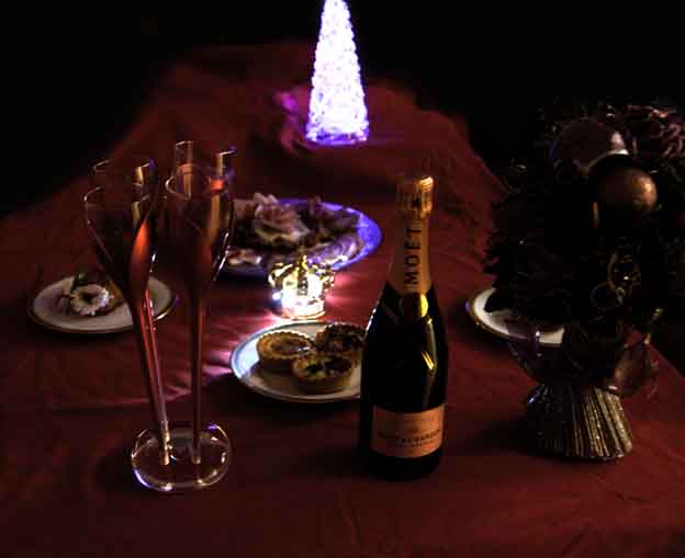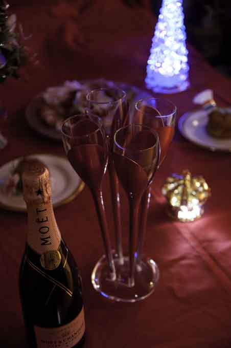 何年か前にモエのピンクのおまけのシャンパングラスが今年の売りです。時、まさに25日になろうとしていたイブの夜。