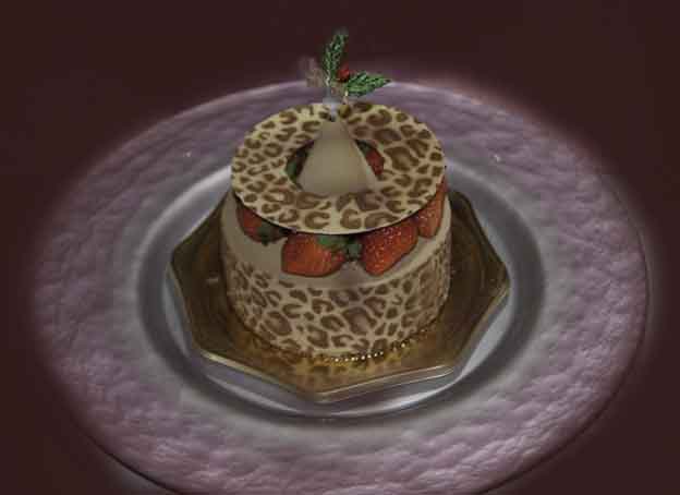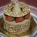 僕と女王のすきなJust Cavalliのようなアニマル柄です。この窪田さんは本当に良いセンスをしています。いつも新作のケーキを新阪急ホテルの1階のブリアンで食べています。いつも食感が固い物と柔らかいものとのミックス。今回もムースとボトムははクッキー生地です。このケーキは仕掛けが。