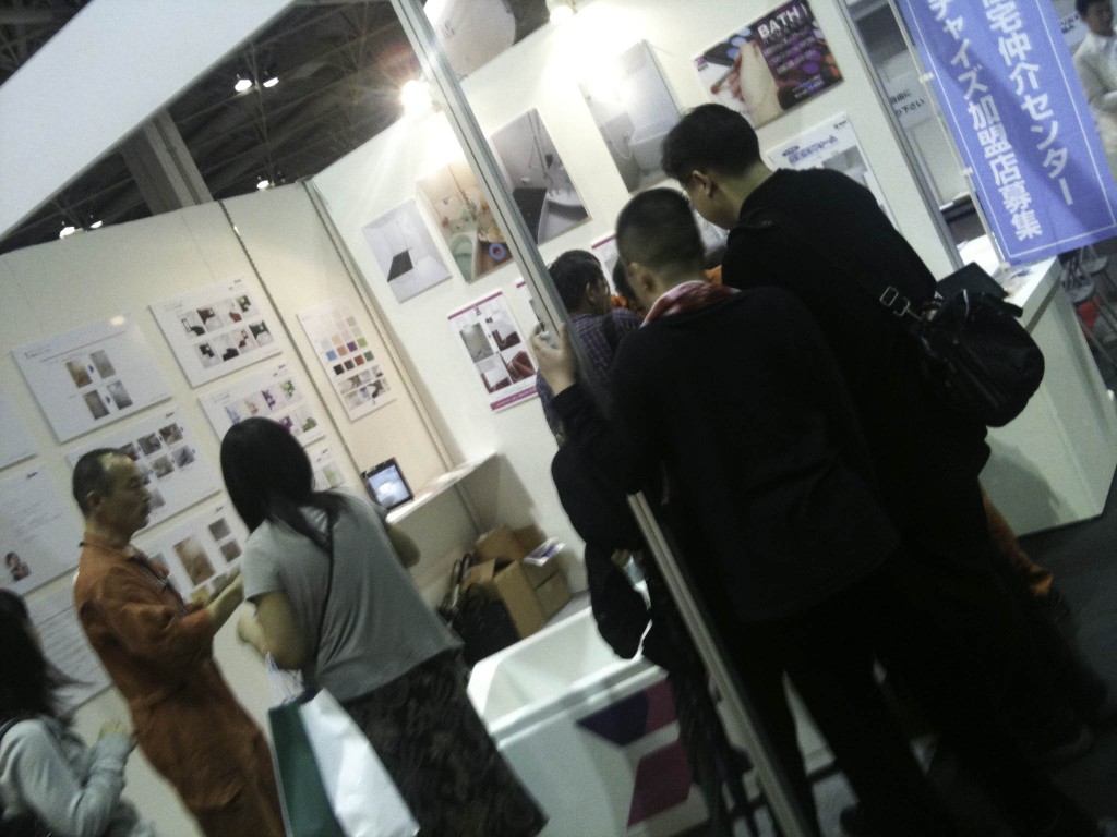 2日目はリノベーションブースの方々に営業に行きました。どのブースも完成写真はすばらしく奇麗なものばかりですが、お風呂の写真はほとんどありません。皆無といってもいいくらいでした。これはビジネスチャンスと名刺交換と営業に、交流もこのフェアの持ち味です。やはり入換えはコスト高でお風呂まで手が回らないとの事。