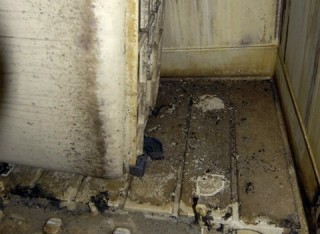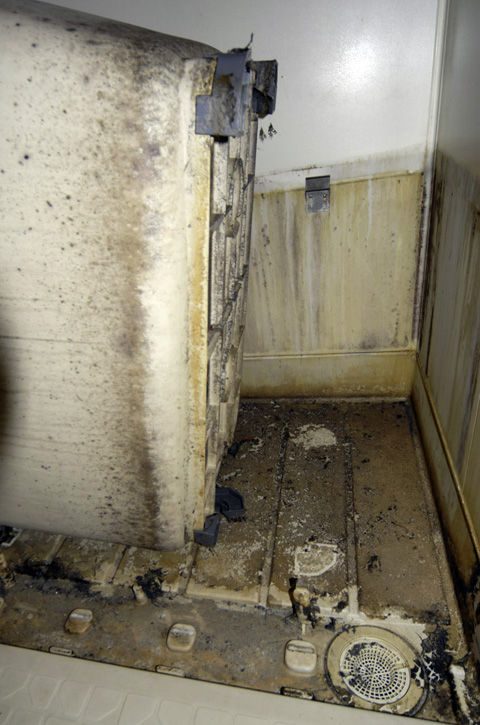 この施工例ですと左側の壁と床の取り合いに錆びに依る浮きが見られます。(上記拡大図参照)