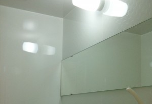 今回のマンションは従来から浴室鏡は有りませんでしたので今迄に6件ほど施工しましたが今回が始めての試みです。