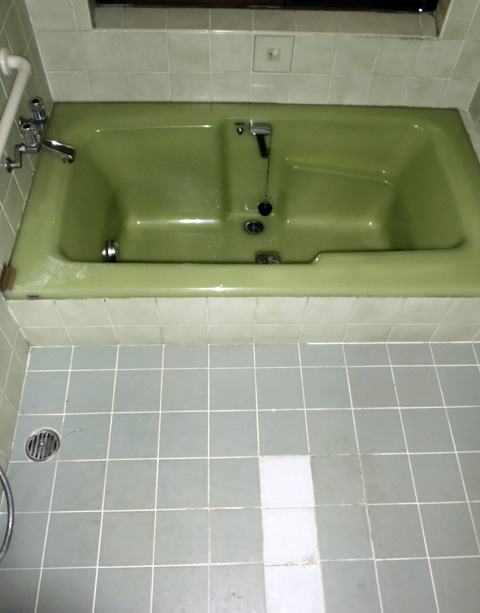 今回は大きなお風呂です。ご主人様から”床のタイルが劣化し、また壁のタイルも痛んでいる箇所があるが何か良いリフォームは無いかと質問されました。さらに以前に浴室リフォーム会社で見積を取ったのだがユニットバスに入れ替えると今の現状より小さくなるのでこのままの大きさで使いたいので何か良い方法は無いかとご質問を受けました。