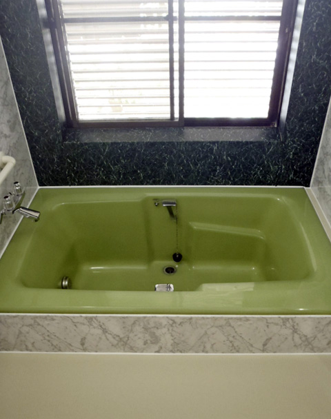 大阪の豊中市の戸建てのお風呂です。戸建ての大きなお風呂はリフォームの費用もユニットバスに入れ替えると高額になり、また、浴槽を交換しようとしてもタイルを壊したりしなくては浴槽が撤去出来ないので従来のリフォーム方法ではお客様は諦めざるを得ないのが現状です。リプロは浴槽のコーティング以外に床や壁のタイルの部分にパネルを貼ってリフォームする工法もあるので紹介します。