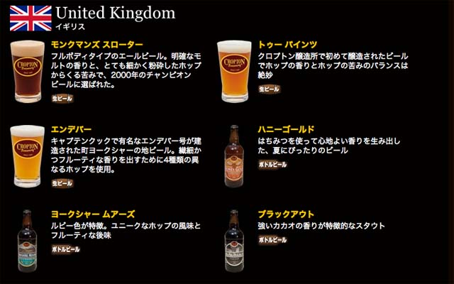 各国の雰囲気を味わっていただき、それぞれの国ビールを楽しめる空間です。