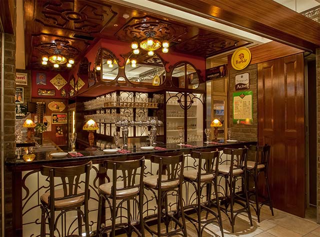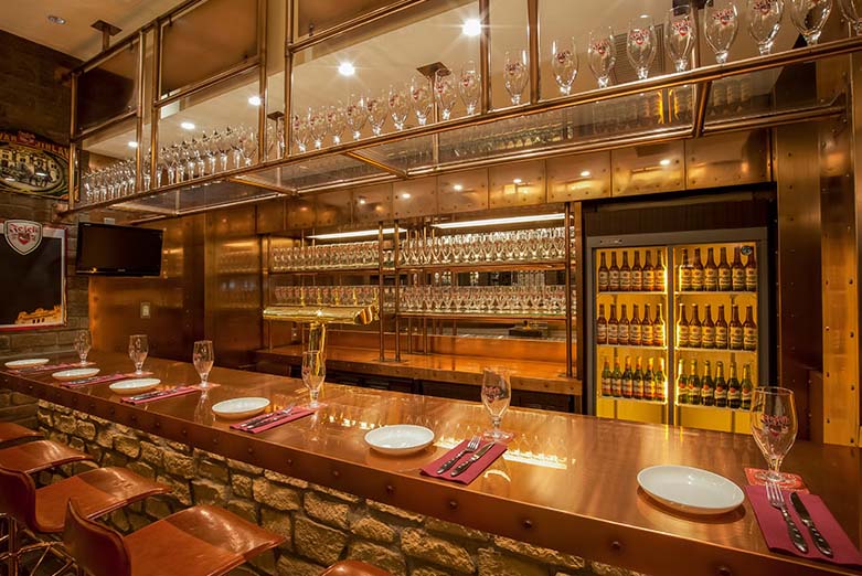 ヨーロッパのカジュアルな街並をイメージさせる空間に、ドイツ・イギリス・アメリカ・ベルギー・チェコ・アジアの6カ国や地域のバーカウンターを再現しました。