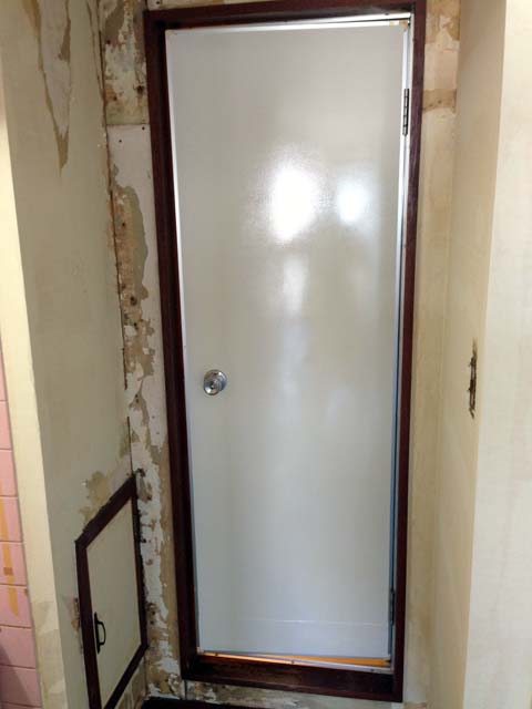 老朽化したユニットバスで困るのは扉です。交換すると結構なお値段になります。5年くらい前の製品なら扉もあるようですが、あまりにも古くなると扉の部品はありません。カバー工法と言って現状の枠の中にもう1つ枠を作って新品に変える方法もあります。(もちろん現状よりせまくなります。)どちらも結構なお値段になります。賃貸マンション(特にワンルーム)の場合は家賃設定から考えても現状復帰の予算は少ないはずです。でも、それでは入居率のアップは望めないところです。ただし、扉が塩ビ鋼板製のものは浴室と同じくコーティングが出来るので経済的になります。今回はその1例を紹介します。