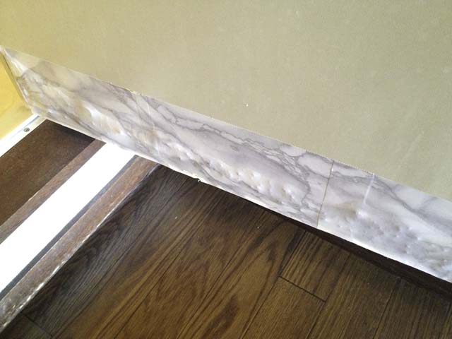 - ペーパー等でサビが見えるまで表面の塩ビシートを剥がす。