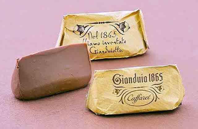 ジャンドゥーヤイタリアのお菓子会社カファレルが考案したもので、ジャンドゥーヤは、ヘーゼルナッツやアーモンドを焙煎しペースト状にしてチョコレートを混ぜたもの。カファレル社のものはヘーゼルナッツの混合率が高くまろやかでコクと香りが楽しめます。