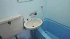 賃貸オーナー様が一番お困りの経年劣化した3点式のユニットバスの浴室再生塗装(コーティング)でのリフォーム例です。2色のカラーを取り入れて3点ユニットバスの便器がある欠点から目をそらせました。